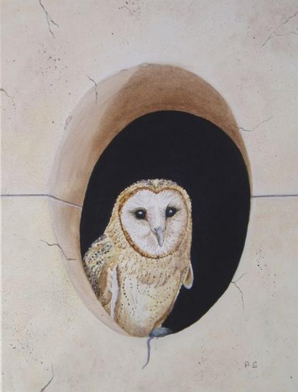 Elle peint sur les murs en extérieur ou intérieur une fresque, un trompe-l’oeil ou une toile à coller ou à accrocher.